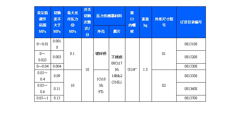 規(guī)格:501/7DZ雙觸點壓力控制器切換差不可調(diào)