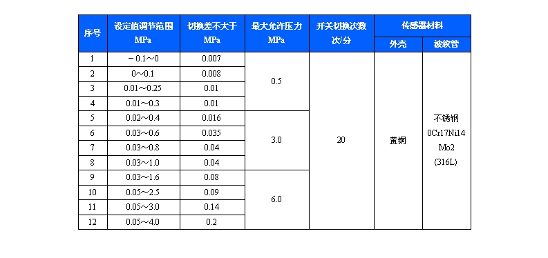 502/7D-C(小型)壓力控制器是超小型設計;不可調控制器備有小切換差型。